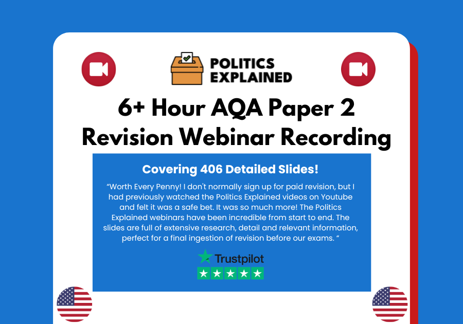 It covers all of the key context, arguments and recent examples you need to know to be prepared for this year's AQA A-Level Politics Paper 2 exam!