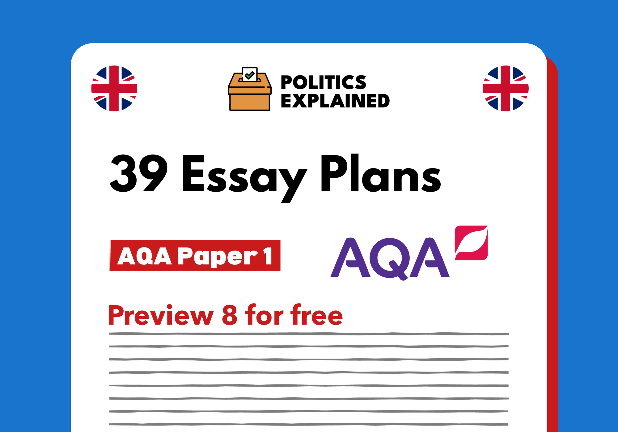 These resources are specifically designed to support students studying AQA A-Level Politics! We're also looking to bring out more resources before this year's exams, including more webinars and essay plans.