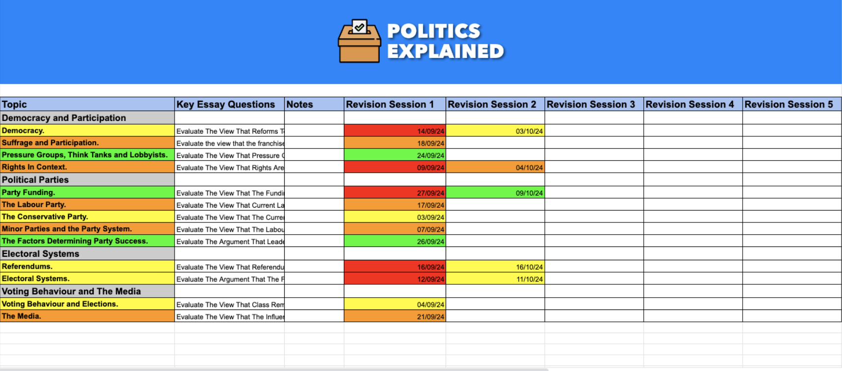 For more detail on how to use the Revision Tracker effectively, watch the ‘How To Revise For A-Level Politics’ video on the Politics Explained YouTube Channel. Link Below!
