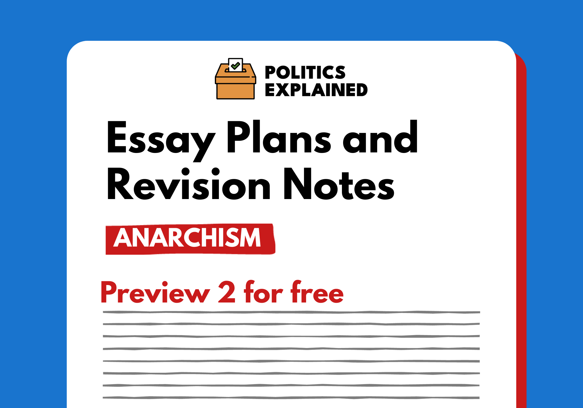 Detailed online textbook of PDFs covering everything you need to know about anarchism for Edexcel A Level Politics. As well as 5 detailed essay plans covering state, society, economy, human nature and liberty!