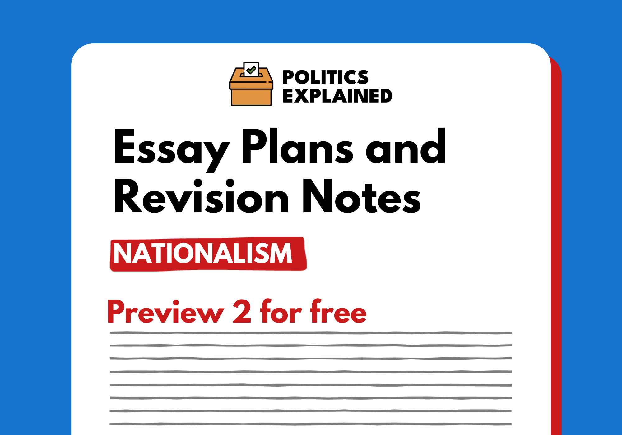 Detailed online textbook of PDFs covering everything you need to know about nationalism for Edexcel A Level Politics. As well as 4 detailed essay plans covering state, society, the economy and human nature.