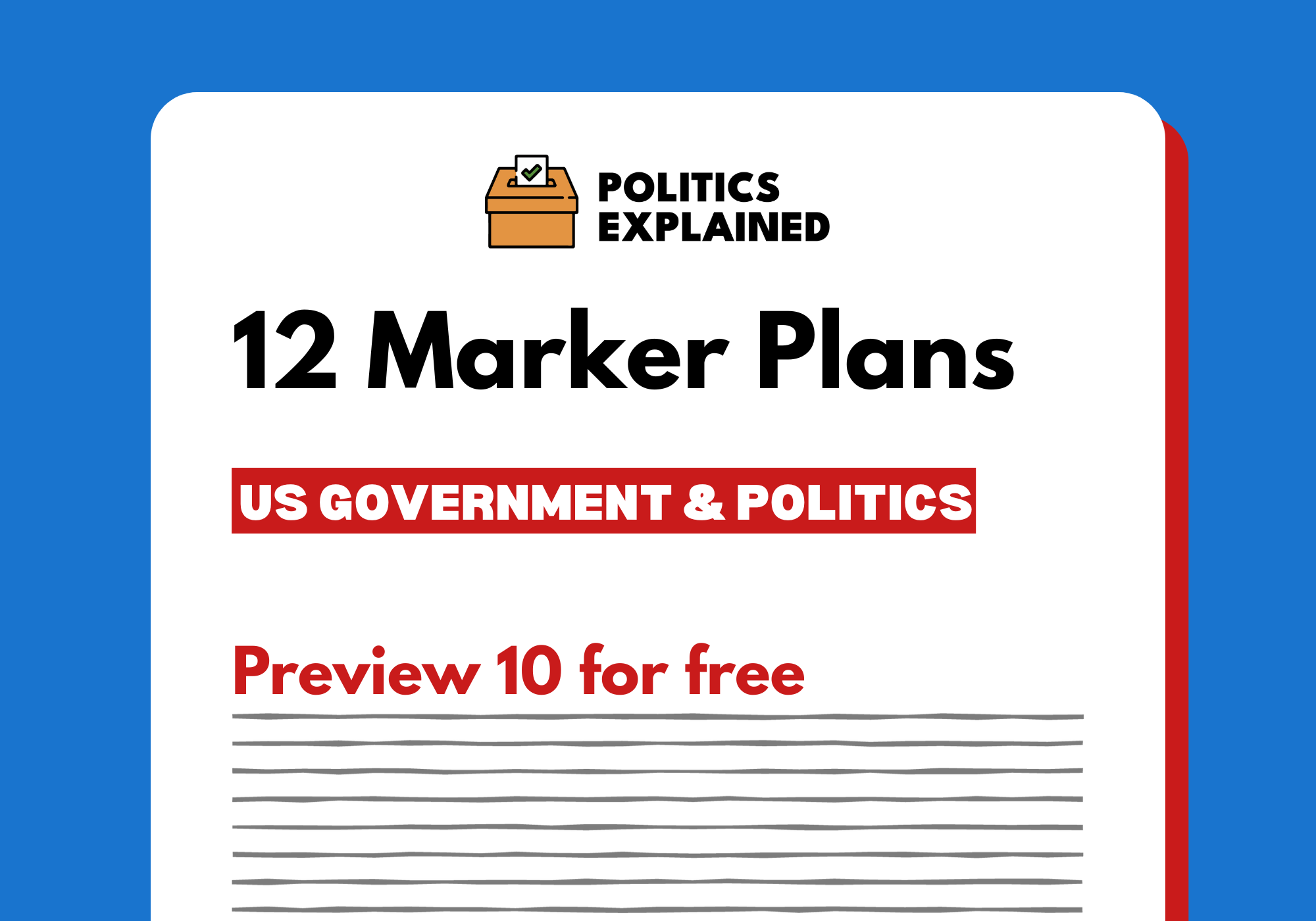 These resources cover everything you need to know for the US Government and Politics section of the Edexcel A Level Politics specification. Essay plans, 12-marker plans, detailed revision notes, and exam-ready example packs to help you revise with confidence.